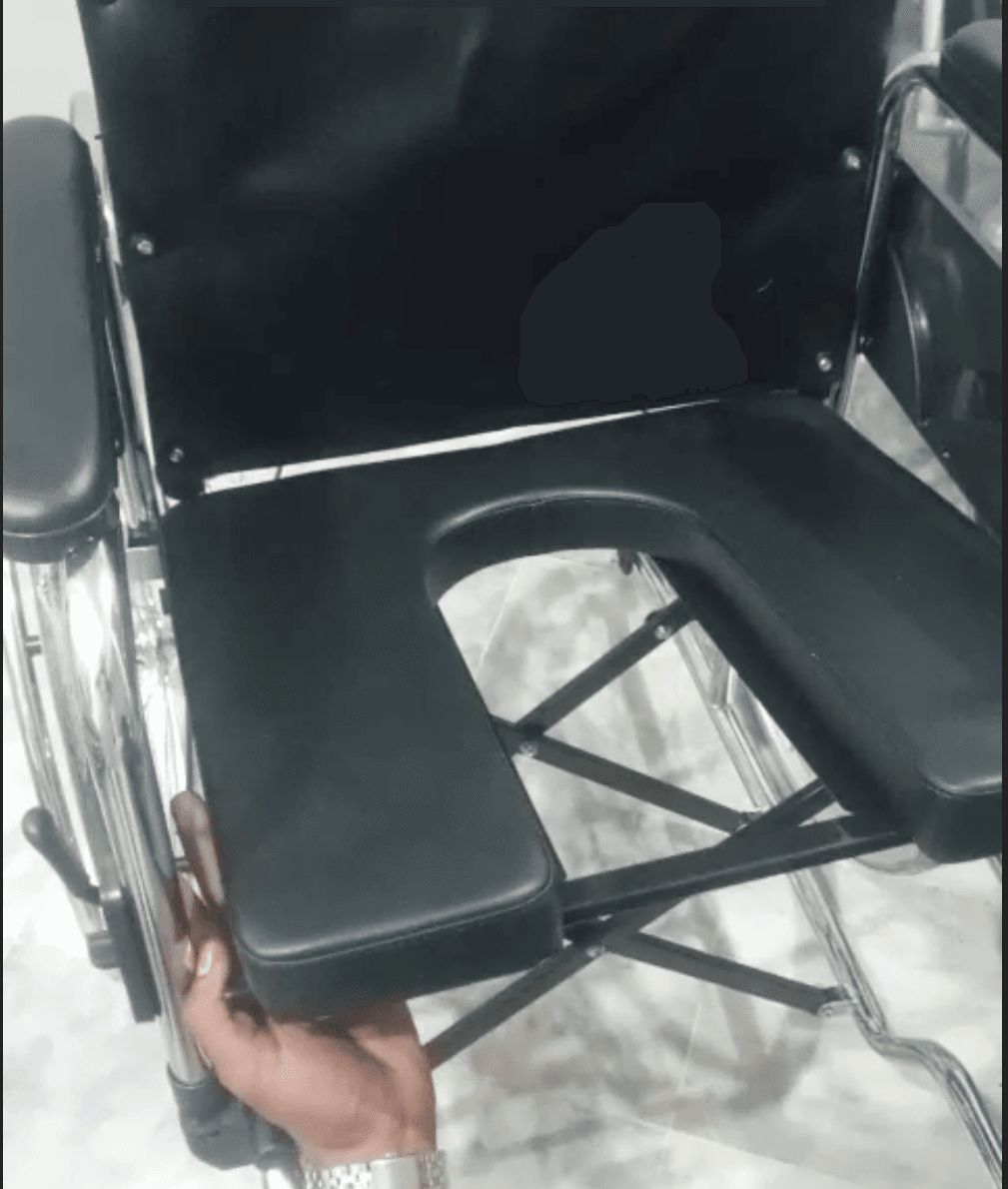 Experience ultimate comfort and convenience with this multi-functional reclining wheelchair, designed for patients, elderly users, and home care. This model combines the features of a commode chair and a reclining wheelchair, making it perfect for long-term use in hospitals or at home. Premium Reclining Wheelchair with Pot — designed for comfort, hygiene, and convenience. Features a reclining backrest, detachable pot for easy sanitation, and durable build for patients or elderly care. Ideal for hospitals and home use in Pakistan.